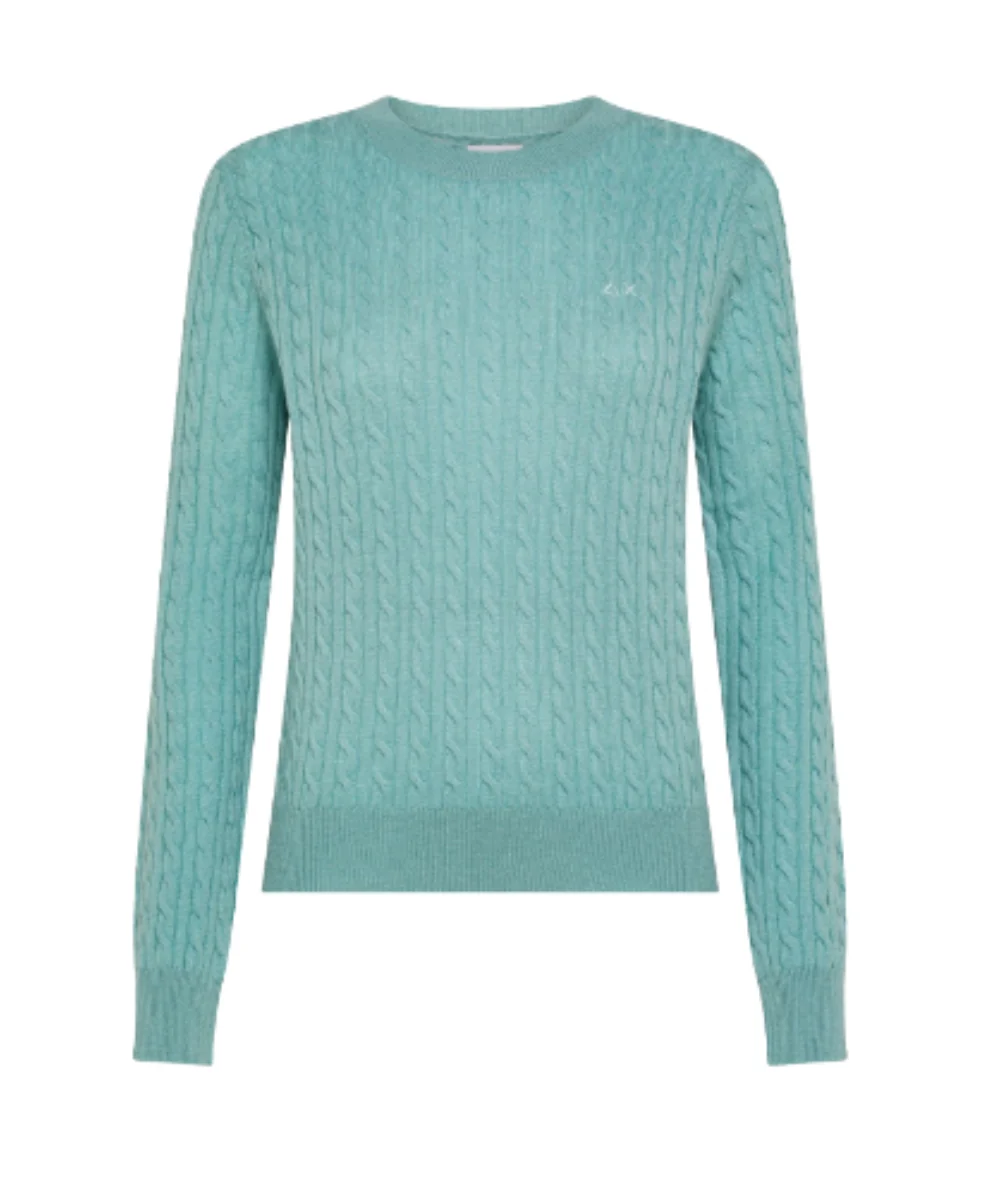 Sun68 Maglione a Trecce K45247 Verde Cenere