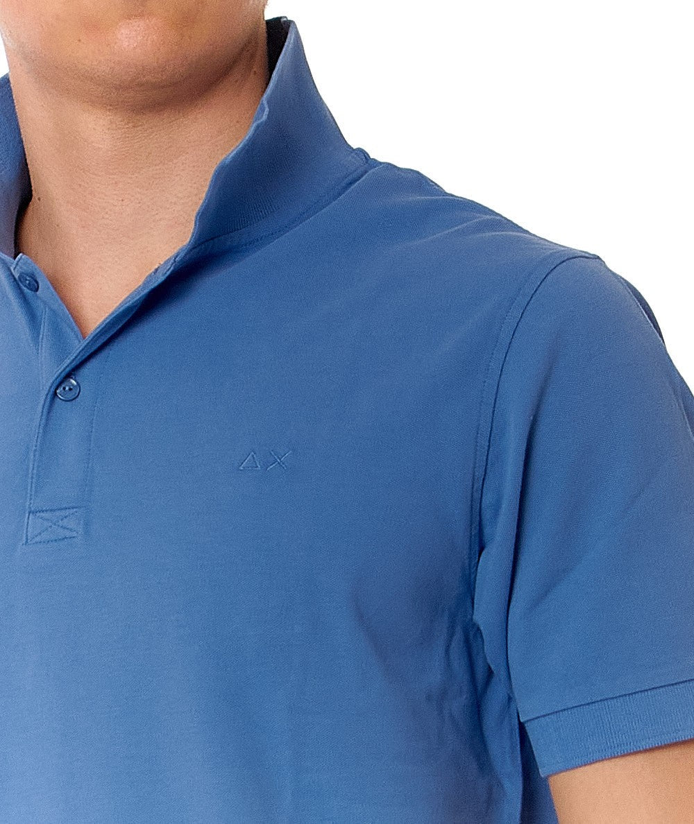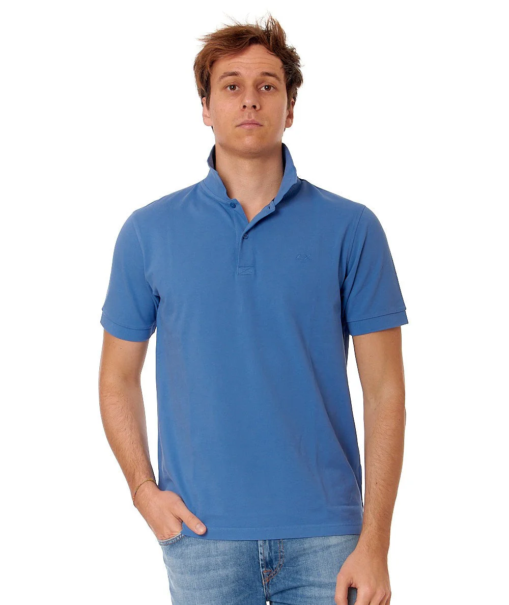 Polo a maniche corte di SUN68, tinta con un lavaggio a freddo per un effetto vintage e realizzata in cotone elasticizzato con logo ricamato sul petto. Codice: A34104 Colore: AVIO