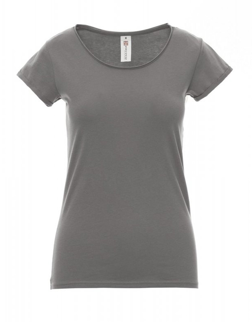 T-shirts sfiancata da donna manica corta con scollo ampio, basso da 1.0cm a taglio vivo, spalle calibrate con cucitura doppia interna, maniche corte e strette finite a taglio vivo con fine risvolto, cucitura laterale, etichetta rimovibile.