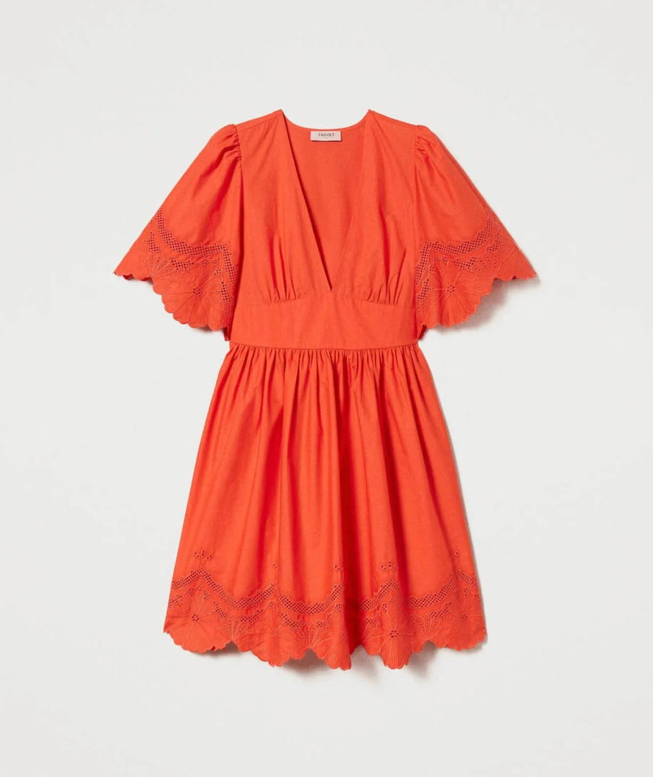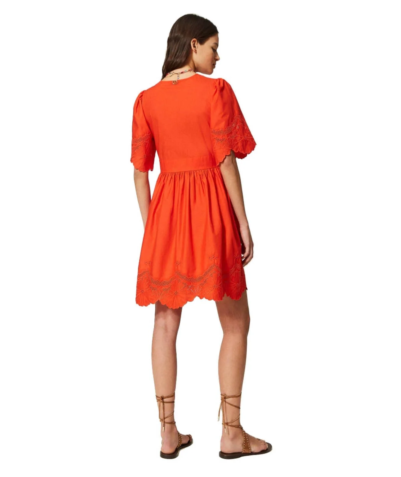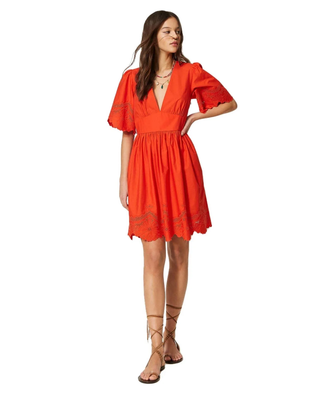 Abito corto di TWINSET in popeline di cotone con ricami sangallo. Codice: 231TT2301 Colore: ARANCIO