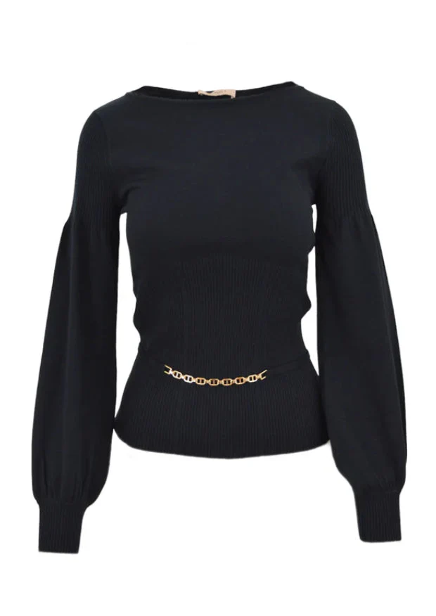 Maglia di TWINSET con cinturino logato, scollo a barca e maniche a palloncino. Codice: 242TP3590 Colore: NERO