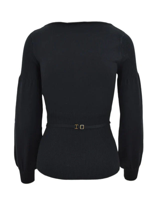 TWINSET MAGLIA CON CINTURINO E MANICHE A PALLONCINO 242TP3590 NERO