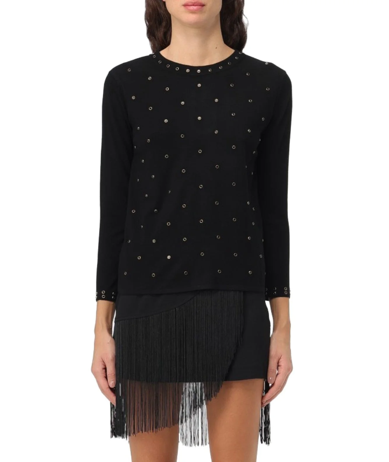 Maglia girocollo di TWINSET con borchie, a maniche lunghe. Codice: 232TT3170 Colore: NERO