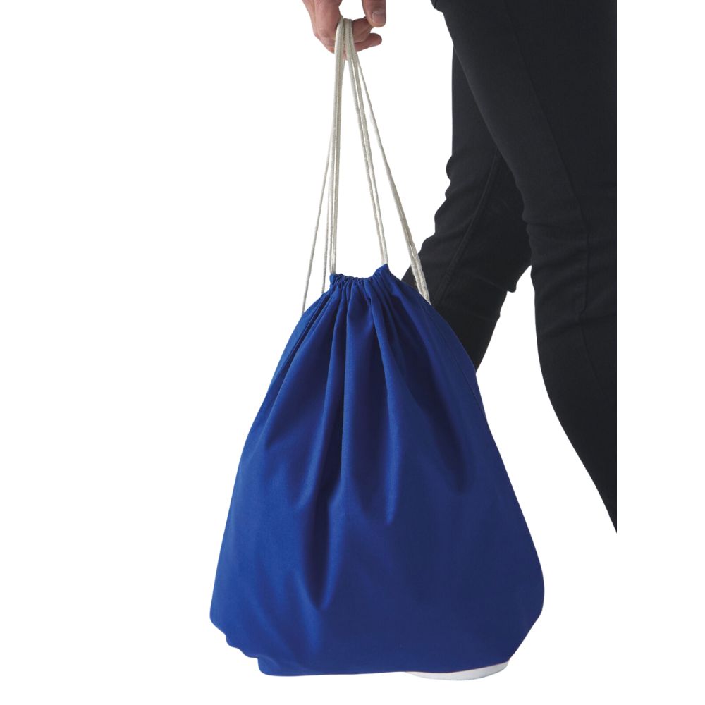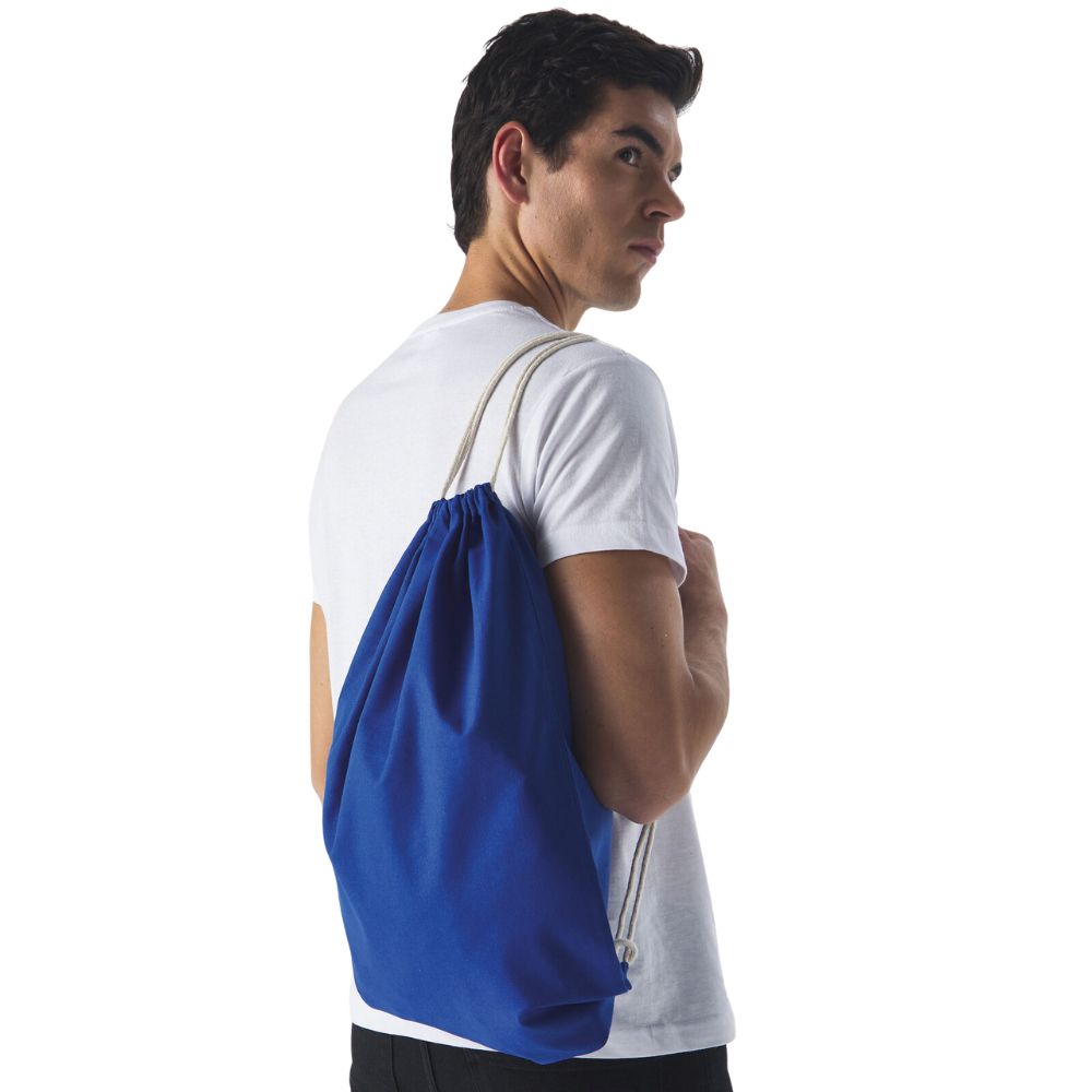 100% cotone. Gymsac con lacci a contrasto. Prodotto stirato per una migliore stampabilità. Etichetta removibile. Dimensioni: 40 x 50 cm.